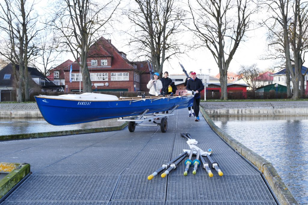 Und dann ab mit den Booten zum Steg: