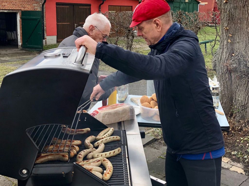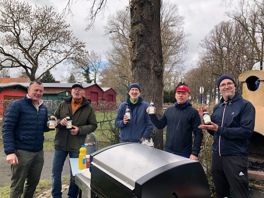 Zu Hause hatte Maik schon vorgegrillt. Und „was zu trinken“ gab’s auch noch. Ein froher und nach langen Wintertrainings, Eiszeiten und Arbeitseinsätzen wohlverdienter Rudersonntag.