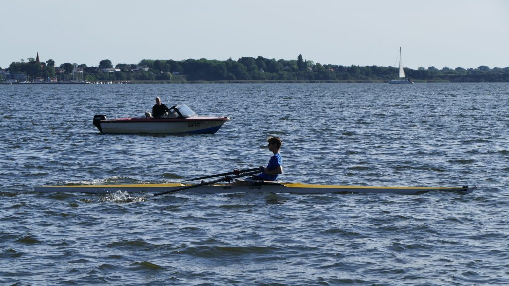 Sebastian Klötzer und Christin Hohensee organisierten eine letzte gemeinsame Ausfahrt der Gruppe, die einmal um den Dänholm herum führte. Diese Strecke hatten viele der Jugendlichen noch nie bewältigt und alle hielten sich bei recht kräftigem Wind und Wellen tapfer auf dem Strelasund. Im Bootshaus wartete ein Büfett, der Grill war bereit und in dieser Runde wurden noch einmal die Leistungen einzelner Sportlerinnen und Sportler gewürdigt, nicht ohne alle zu ermutigen, sich im nächsten Sportjahr weiter zu entwickeln.